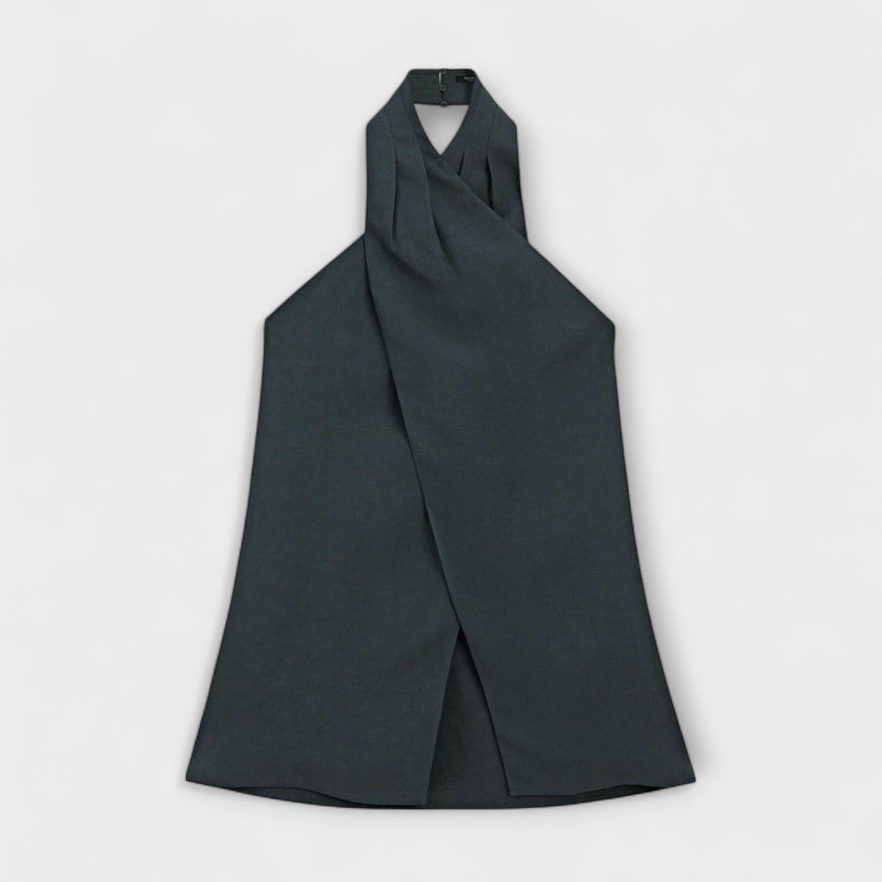Da un nuevo toque a tu guardarropa de verano con nuestro top de cuello halter en un impresionante tono azul. Esta pieza moderna combina un toque de estilo retro y será tu primera opción para looks veraniegos elegantes.