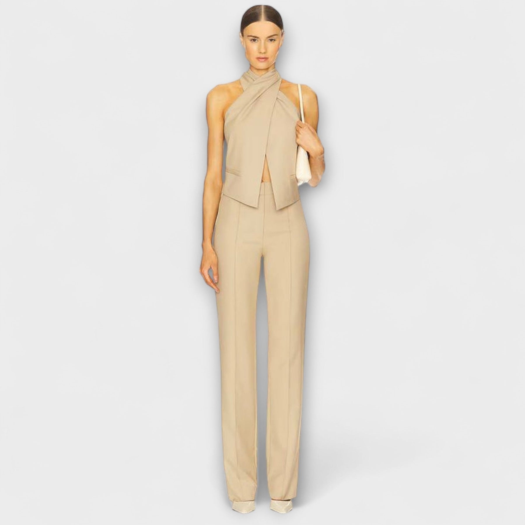• Chic cuello halter cruzado: Añade estructura a tu apariencia y un toque contemporáneo.