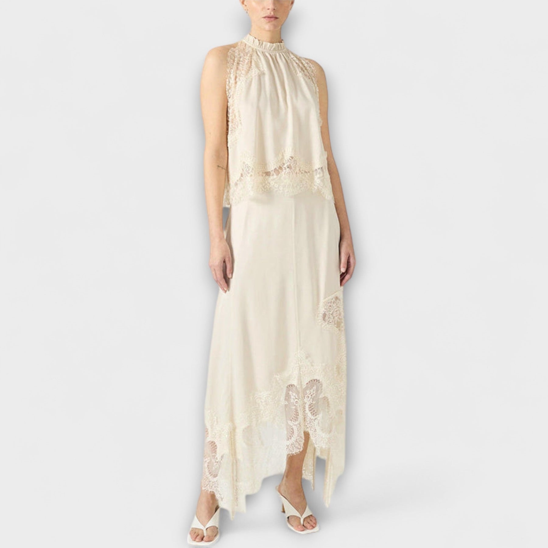 Kaia - Blusa de satén con encaje y escote plisado en conjunto