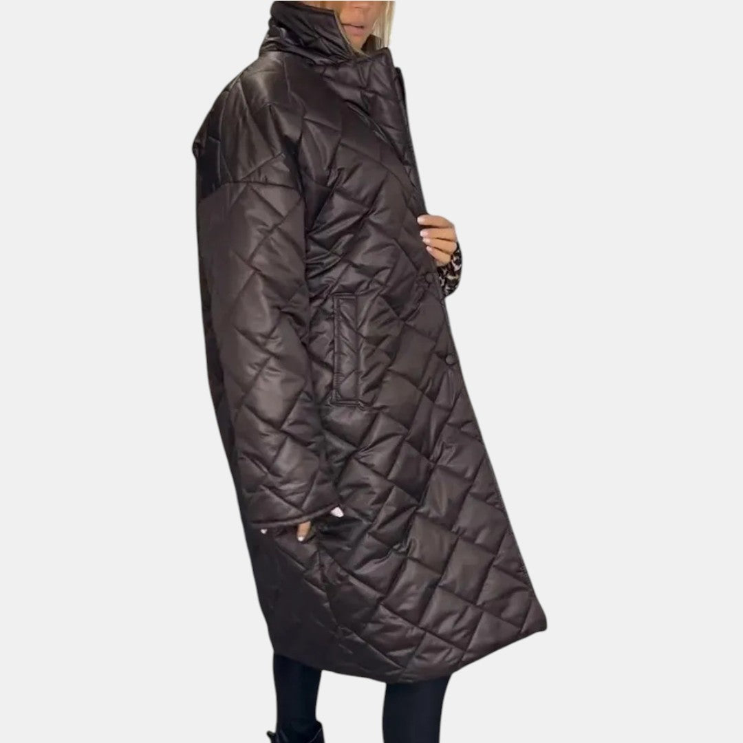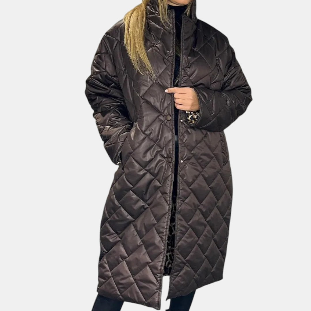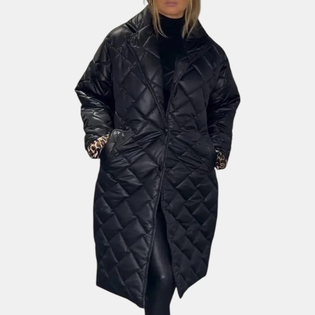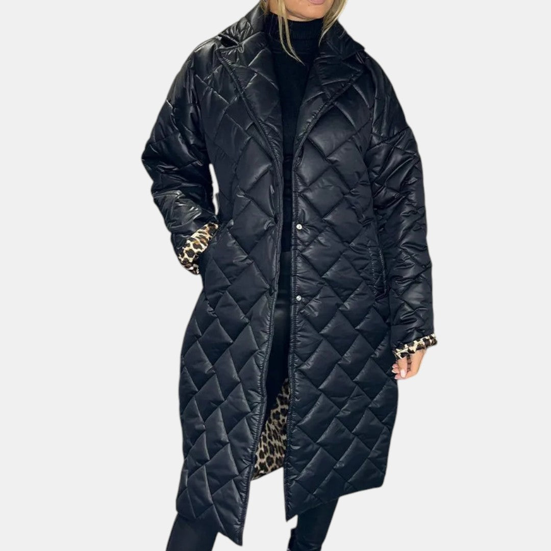Descubre la elegancia y el confort del Orsélia – Abrigo acolchado, una prenda que redefine el estilo invernal. Su exterior acolchado mantiene el calor sin añadir peso, mientras su interior sorprende con un forro de estampado animal, visible en los puños para un toque moderno y distintivo.